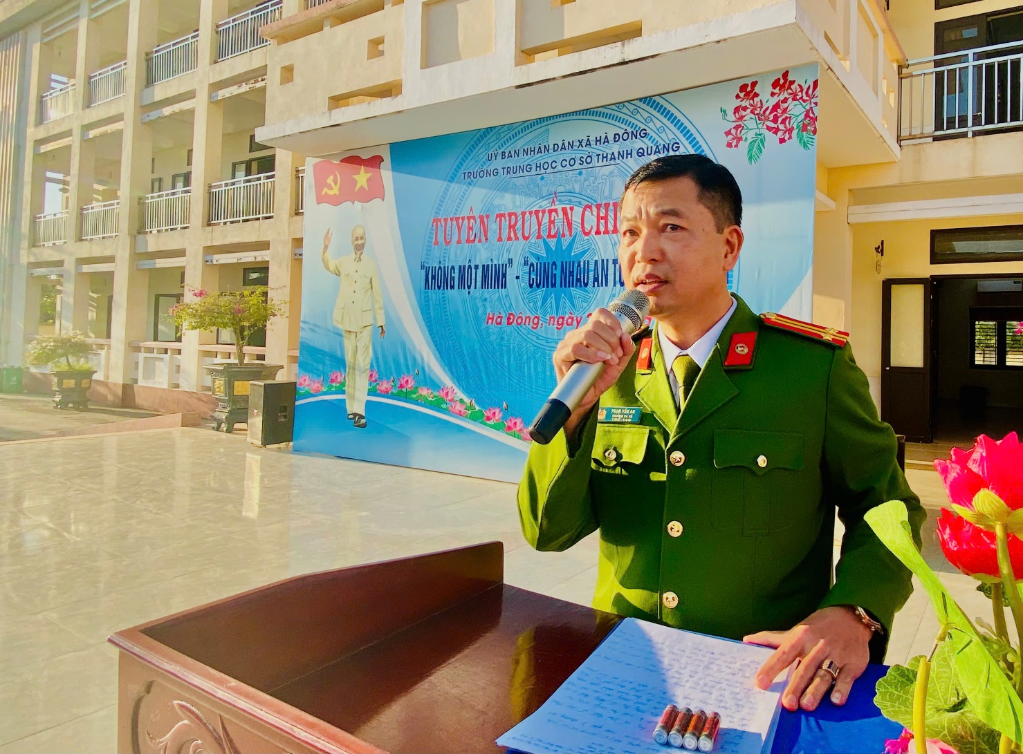 Chiều 24/11/2025, Công an xã Hà Đông kết hợp với trường THCS Thanh Quang tổ chức Hội nghị tuyên truyền chiến dịch “ Không một mình” - “ Cùng nhau an toàn trực tuyến” Dự buổi tuyên truyền có đồng chí Bùi Thanh Cao- Bí thư chi bộ, Hiệu trưởng trường THCS, các đồng chí trong BGH nhà trường cùng các em học sinh trường THCS Thanh Quang.