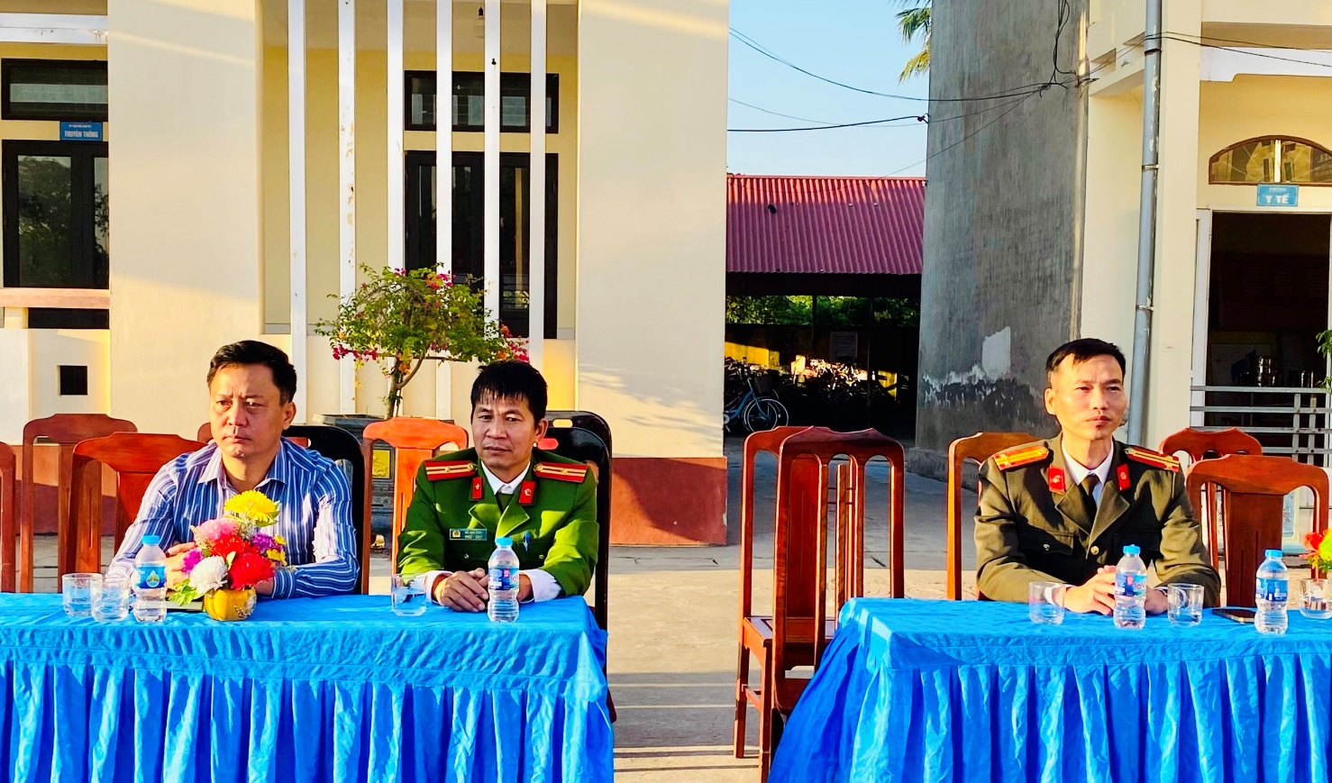 Đại diện nhà trường cùng lực lượng Công an xã dự buổi tuyên truyền