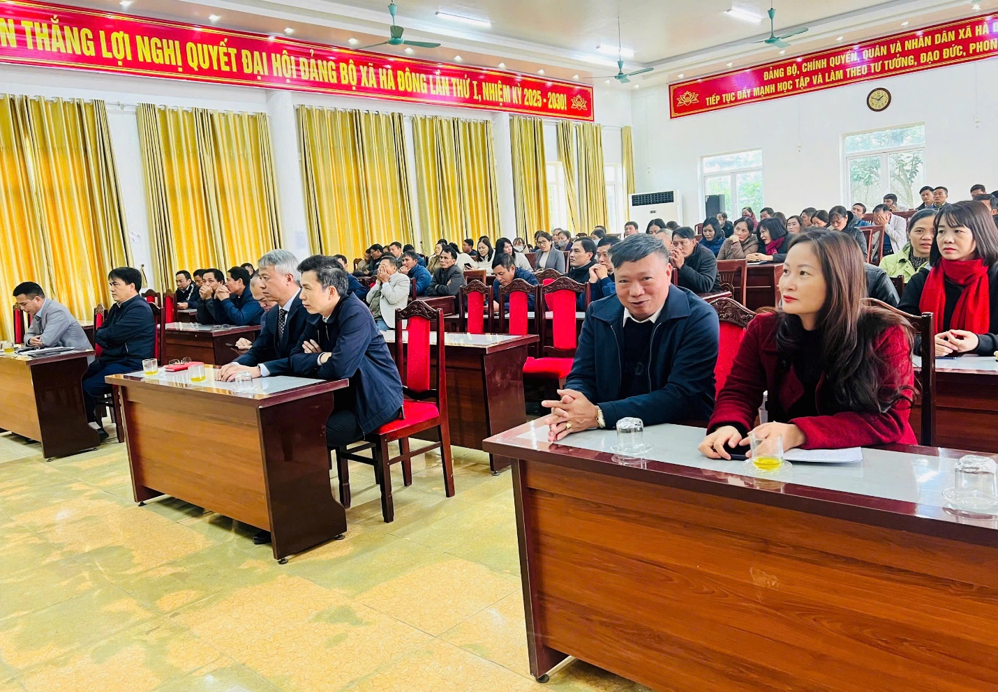 Tại điểm cầu xã Hà Đông, dự hội nghị có các đồng chí: Vũ Đức Hạnh- Bí thư Đảng ủy, Chủ tịch HĐND xã; Nguyễn Hải Đông -Phó Bí thư Thường trực Đảng ủy; Hoàng Văn Đại - Phó Bí thư Đảng ủy, Chủ tịch UBND xã; cùng các đồng chí Ủy viên Ban Chấp hành Đảng bộ xã, lãnh đạo HĐND, UBND, Thường trực Ủy ban MTTQ Việt Nam xã; trưởng các tổ chức chính trị – xã hội; báo cáo viên và cộng tác viên dư luận xã hội.