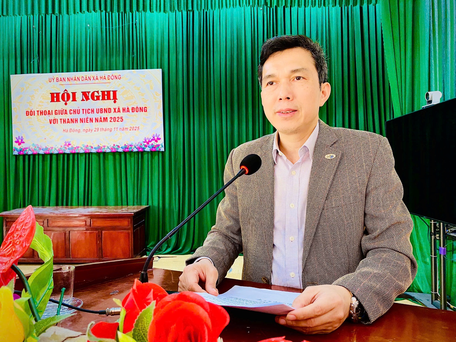 Tại cuộc đối thoại với thanh niên, Chủ tịch UBND xã Hoàng Văn Đại cho biết sau khi sắp xếp mô hình chính quyền địa phương 2 cấp, Hà Đông đã ưu tiên đầu tư hạ tầng trung tâm phục vụ hành chính công. Xã đã nâng cấp hệ thống máy tính, máy in, máy scan, cây lấy số tự động và lựa chọn đường truyền internet tốc độ cao nhằm phục vụ tiếp nhận, số hóa hồ sơ.