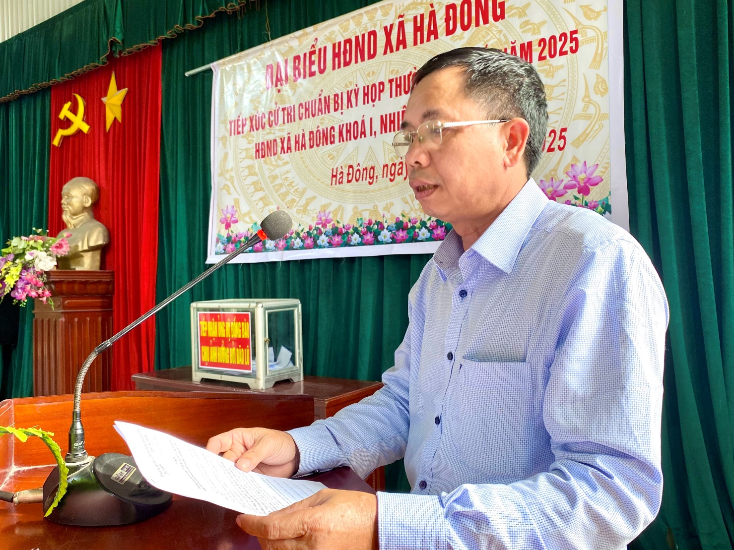 Tại hội nghị tiếp xúc, Chủ tịch UBND xã Hoàng Văn Đại đã thông tin về hoạt động của chính quyền xã Hà Đông trong bối cảnh bộ máy vừa mới thành lập và vận hành với khối lượng công việc sau sáp nhập lớn, rất nhiều việc thực hiện chưa có tiền lệ. Hiện tại cả hệ thống chính trị của địa phương đang tập trung giải quyết công việc, đặc biệt là công tác giải phóng mặt bằng các dự án trọng điểm của thành phố để bàn giao mặt bằng kịp với chỉ đạo của chủ tịch UBND thành phố.