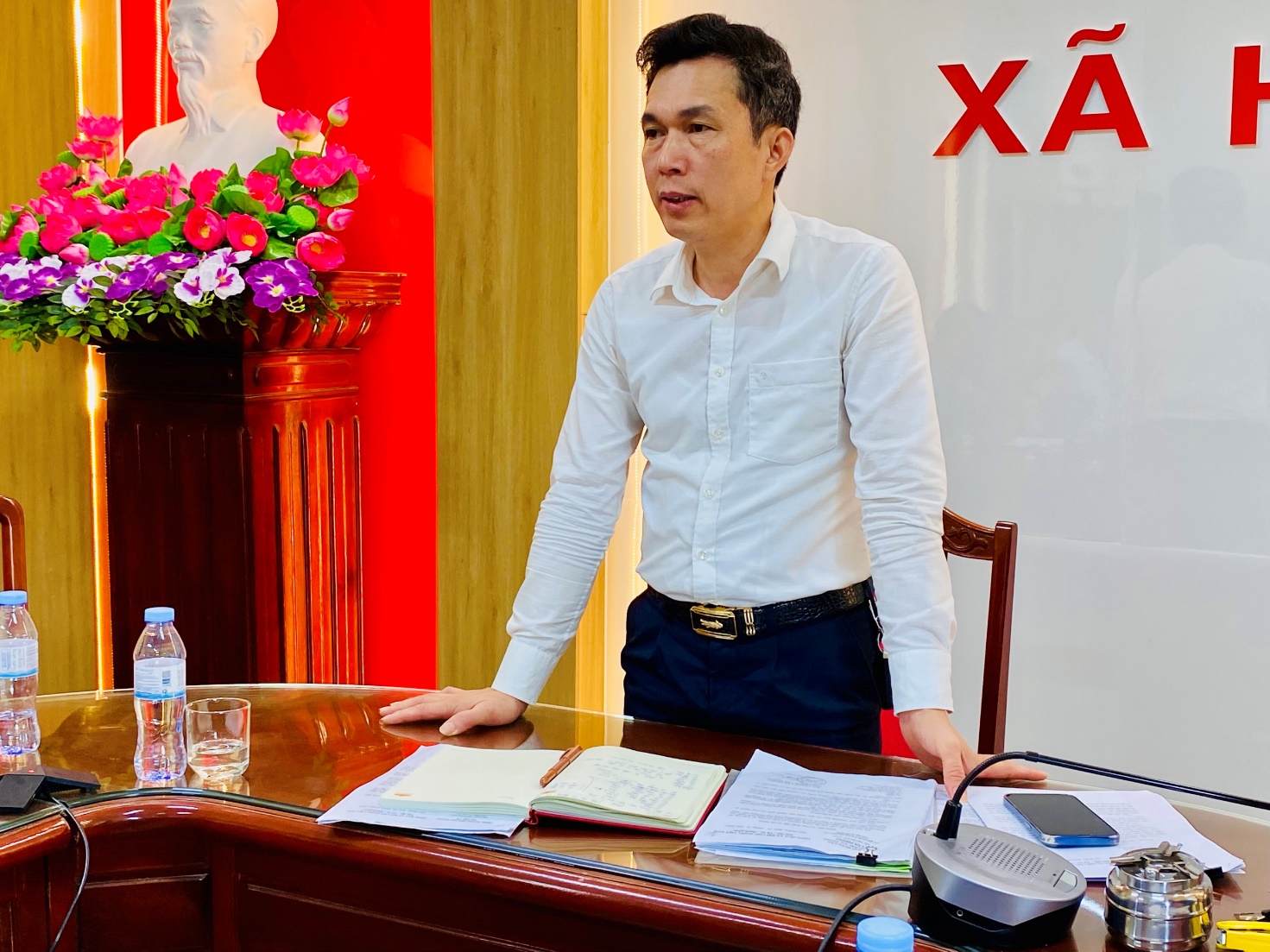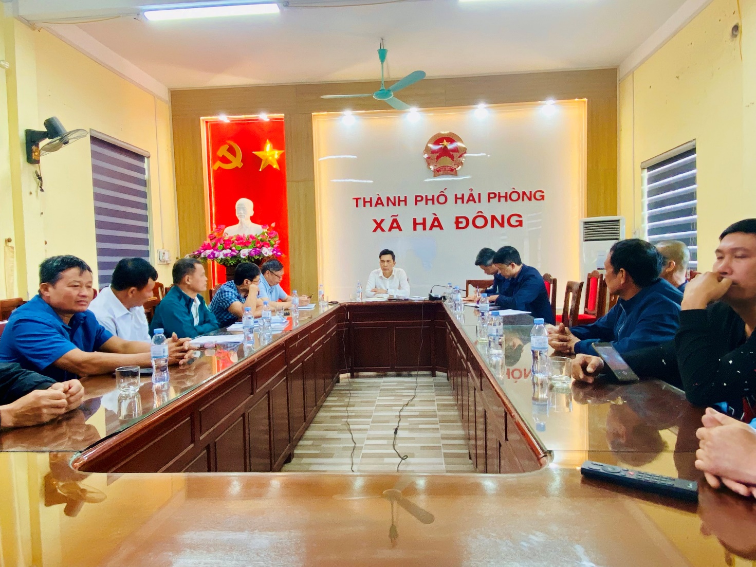 Đồng chí Chủ tịch UBND xã Hà Đông Hoàng Văn Đại chủ trì buổi làm việc