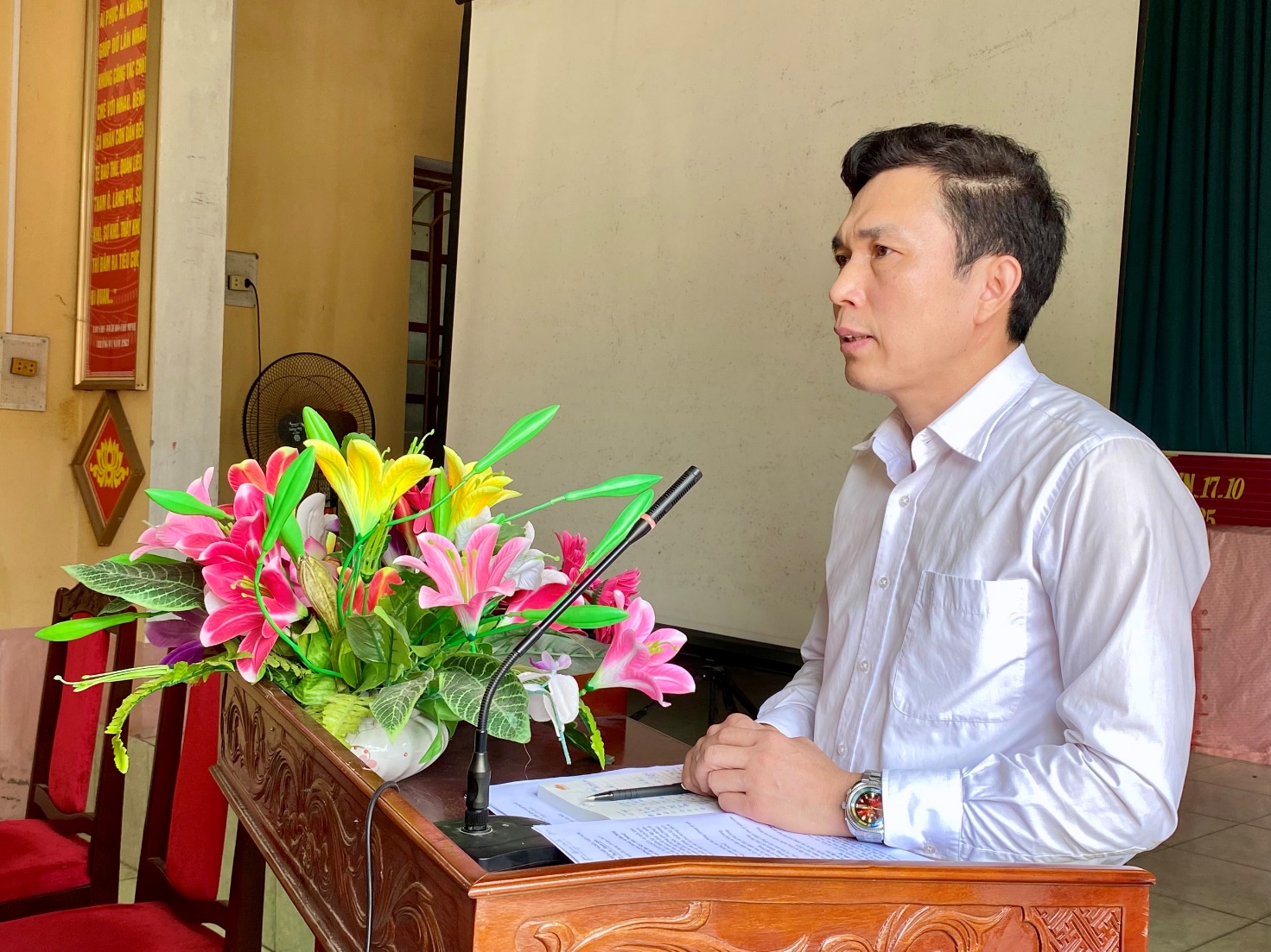 Đồng chí Hoàng Văn Đại – Phó Bí thư Đảng ủy, Chủ tịch UBND xã Hà Đông chủ trì hội nghị.