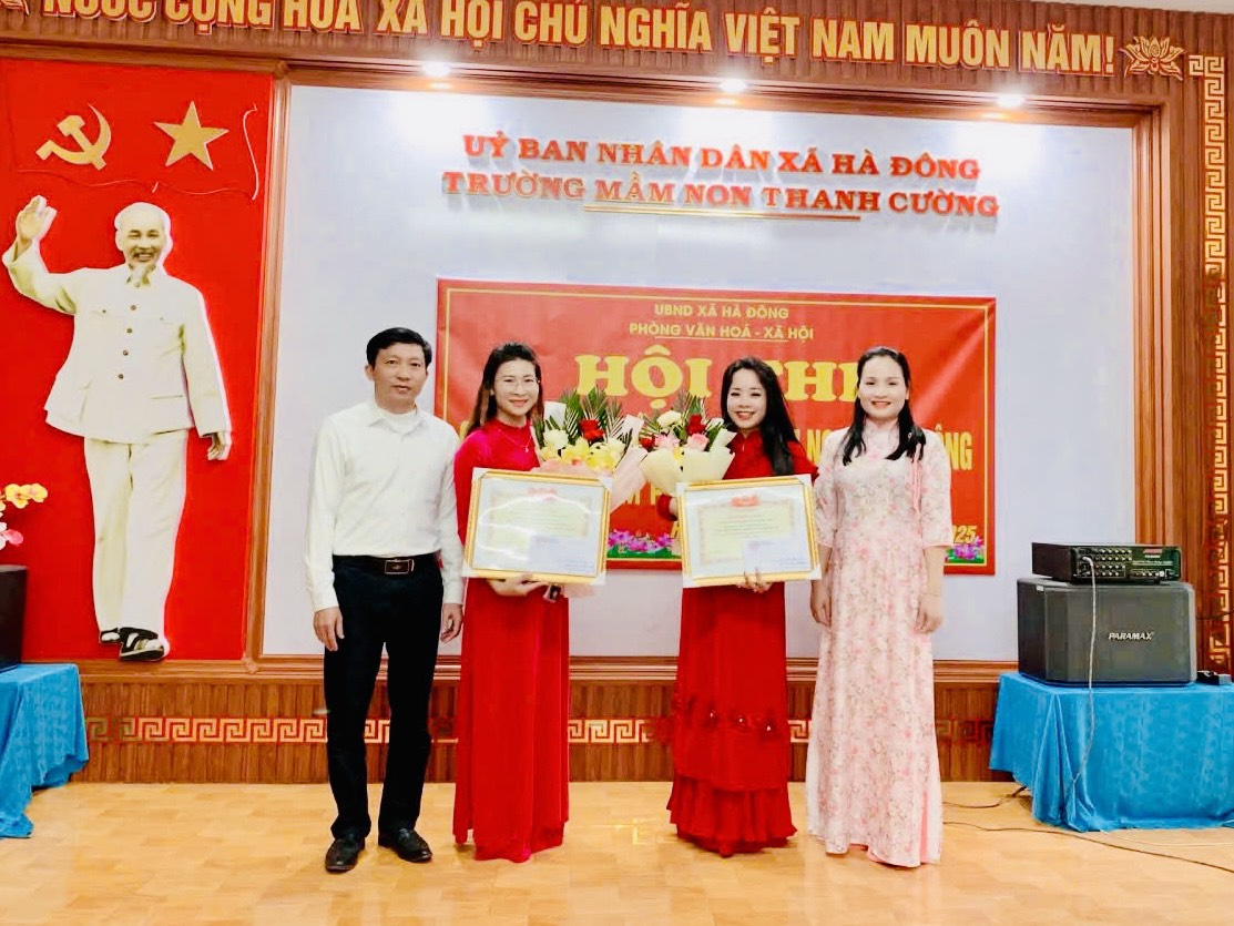 Kết thúc hội thi, cả 8 giáo viên đều được công nhận danh hiệu “Giáo viên dạy giỏi giáo dục Mầm non xã Hà Đông, năm học 2025 -2026” . Trong đó, cô giáo Lê Thị Phương Anh dạy khối lớp 5 tuổi ( giáo viên trường Mầm non Thanh Quang) và cô giáo Trương Thị Toan dạy khối lớp 4 tuổi (giáo viên trường Mầm non Thanh Hồng) được công nhận danh hiệu “ Giáo viên có thành tích xuất sắc tại Hội thi giáo viên dạy giỏi giáo dục Mầm non xã Hà Đông, năm học 2025 – 2026”.