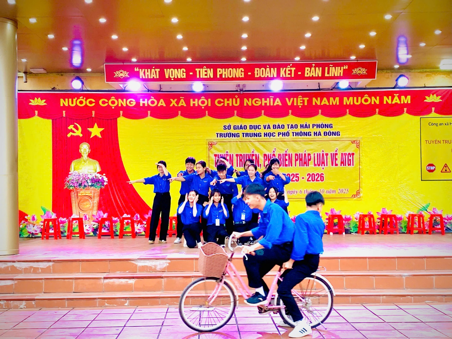 Sáng 6/10/2025, tại Trường THPT Hà Đông, Tổ Cảnh sát trật tự Công an xã Hà Đông phối hợp với Ban Giám hiệu nhà trường tổ chức chương trình tuyên truyền, phổ biến pháp luật về trật tự an toàn giao thông cho học sinh.
