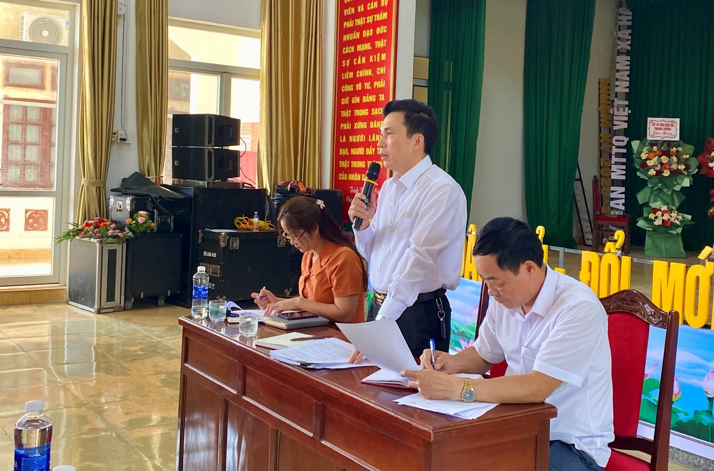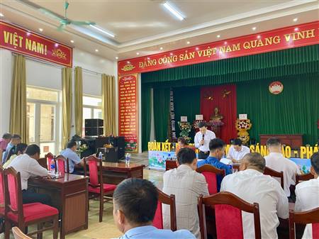 Đồng chí Hoàng Văn Đại, chủ tịch UBND xã Hà Đông chủ trì hội nghị triển khai công tác cưỡng chế thu hồi đất thực hiện Dự án đường 396