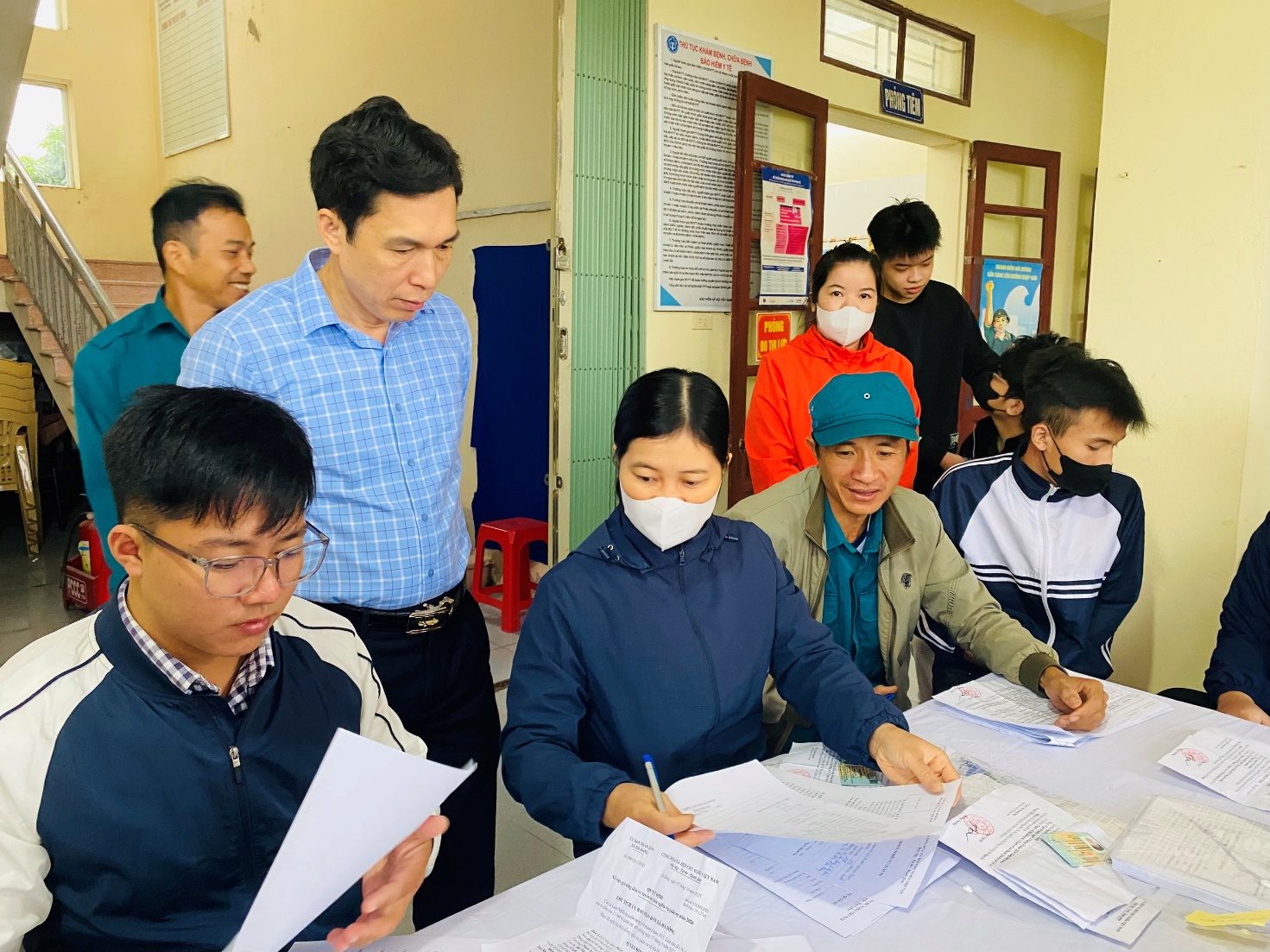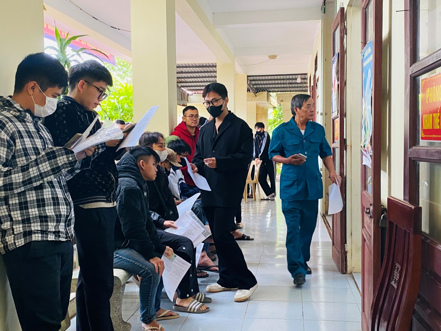 Chủ tịch UBND xã Hoàng Văn Đại dự, động viên thanh niên sơ tuyển sức khỏe