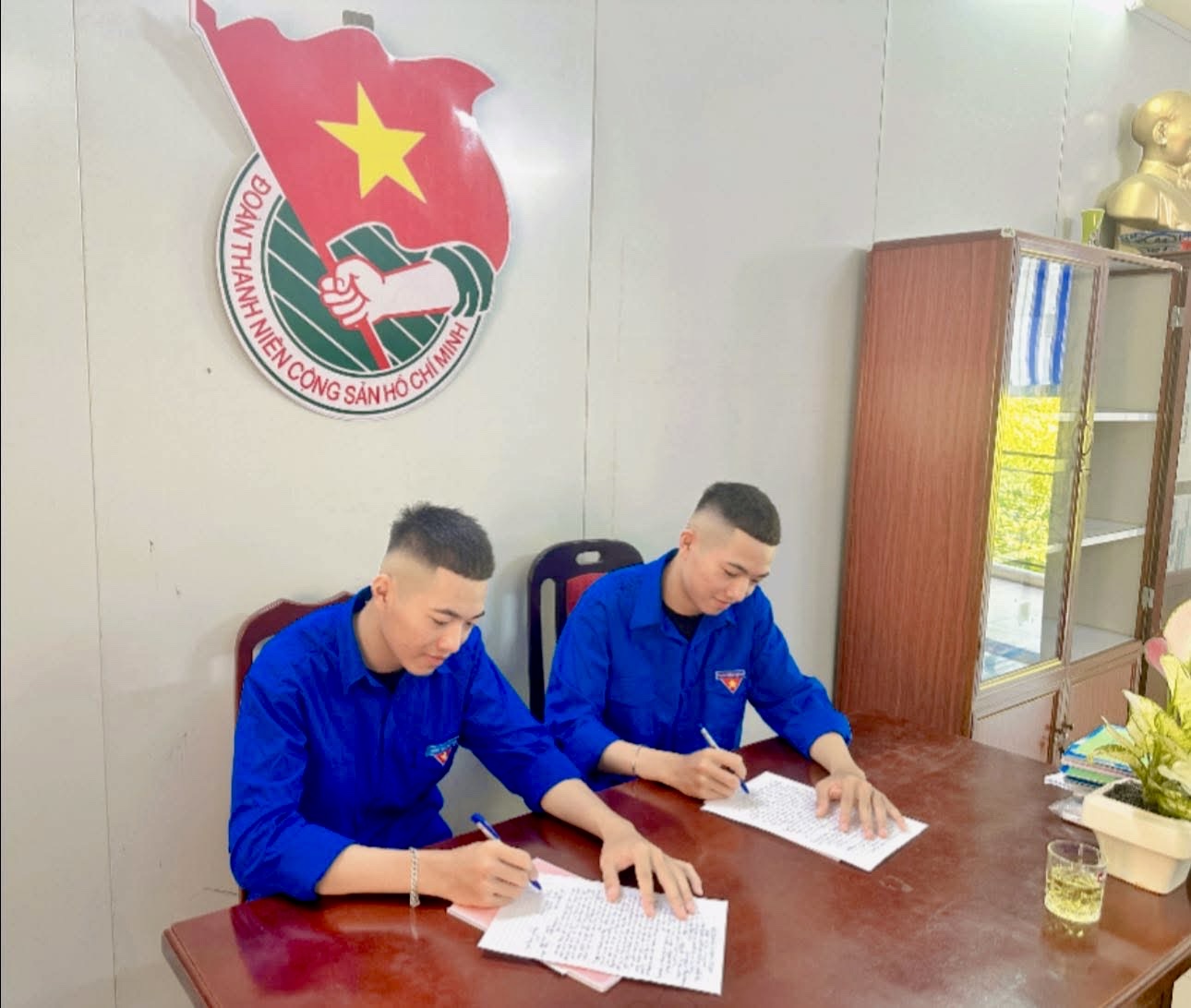 Thanh niên Nguyễn Thanh Cao, Nguyễn Thảo nguyên ( anh em sinh đôi) thôn Tiên Kiều viết đơn tình nguyện nhập ngũ